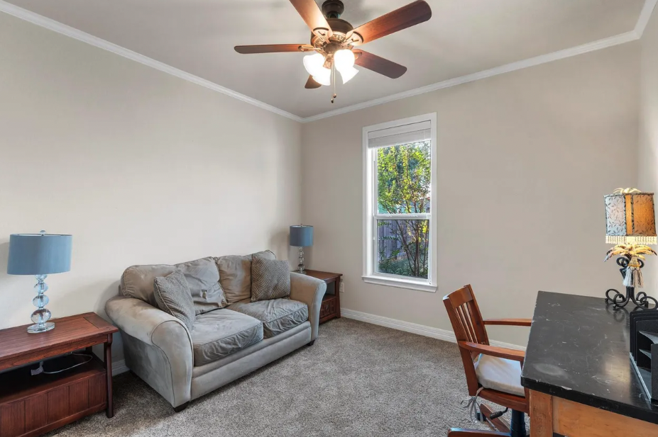 Welcome Home to the warmth and grace of this beautiful opportunity to assume a mortgage rate at 2.75% and have a home with every needed space and delightful functionality. Walking through the front door, immediately the spacious dining room on the left brings to mind family dinners. Further in, the entire space opens to a great room with fireplace, a bright and cheerful breakfast room, and all anchored by a kitchen with light cabinetry, an island with bar top counter that hides last minute dishes in the sink, and ample counter space. The refrigerator conveys providing a complete appliance package. Towards the garage is the laundry room and washer and dryer that also convey, built in coat hooks and cubbies for catching back packs and jackets when coming in from the garage for the day, and don't miss a very large, walk in pantry with loads of shelving. The primary bedroom access is off the great room area and isolated and cosy. Tray ceilings amplify the height and add interest. In the primary bath the shower is private and two sinks are perfectly divided by drawers giving two people their own space. The primary walk in closet is just past the deep soaking, jetted, tub and has a full unit of drawers to compliment all the hanging space. Downstairs is completed with a perfectly sized guest bedroom, beautiful and warm hall bath, and an office space tucked away in the back of the home. This back room also has a full closet so it could easily be used as a 5th bedroom. Upstairs is the most fun. Immediately at the top of the stairs to the right, don't miss the perfectly designed bath as you pause to appreciate the hangout landing large enough to set up kids homework and or gaming area. The first bedroom is large and bright with a big walk in closet. But the second bedroom is the gem. Big enough to share and yet still feel private AND have nooks to delight the imagination. Storage behind almost every door. And happily, the large back yard comes complete with patio fire pit.